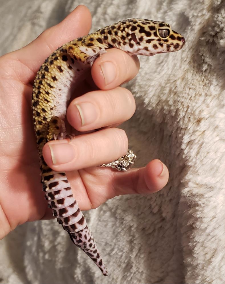 I’ve been in rescue care since July 2024, and while my start in life wasn’t the easiest, I’m so excited to share how far I’ve come. I was saved by a kind pet store manager who knew something wasn’t right when I was being housed with another leopard gecko (that’s a big no-no for our species). The stress from cohabitation left me underweight and not quite thriving.